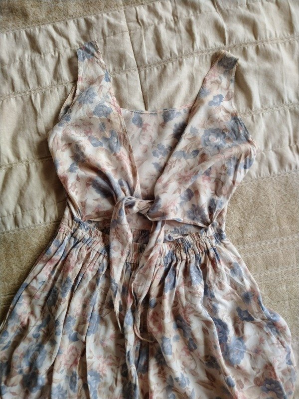 Vestido largo de algodón Liviano, falda súper amplia, la espalda se cierra cruzando la tela con un moño, cintura con elástico se adapta a varios talles