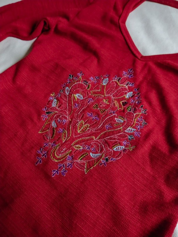vestido de lanilla, elastizado bordado en el pecho, la espalda es semi descubierta. impecable, sin uso.